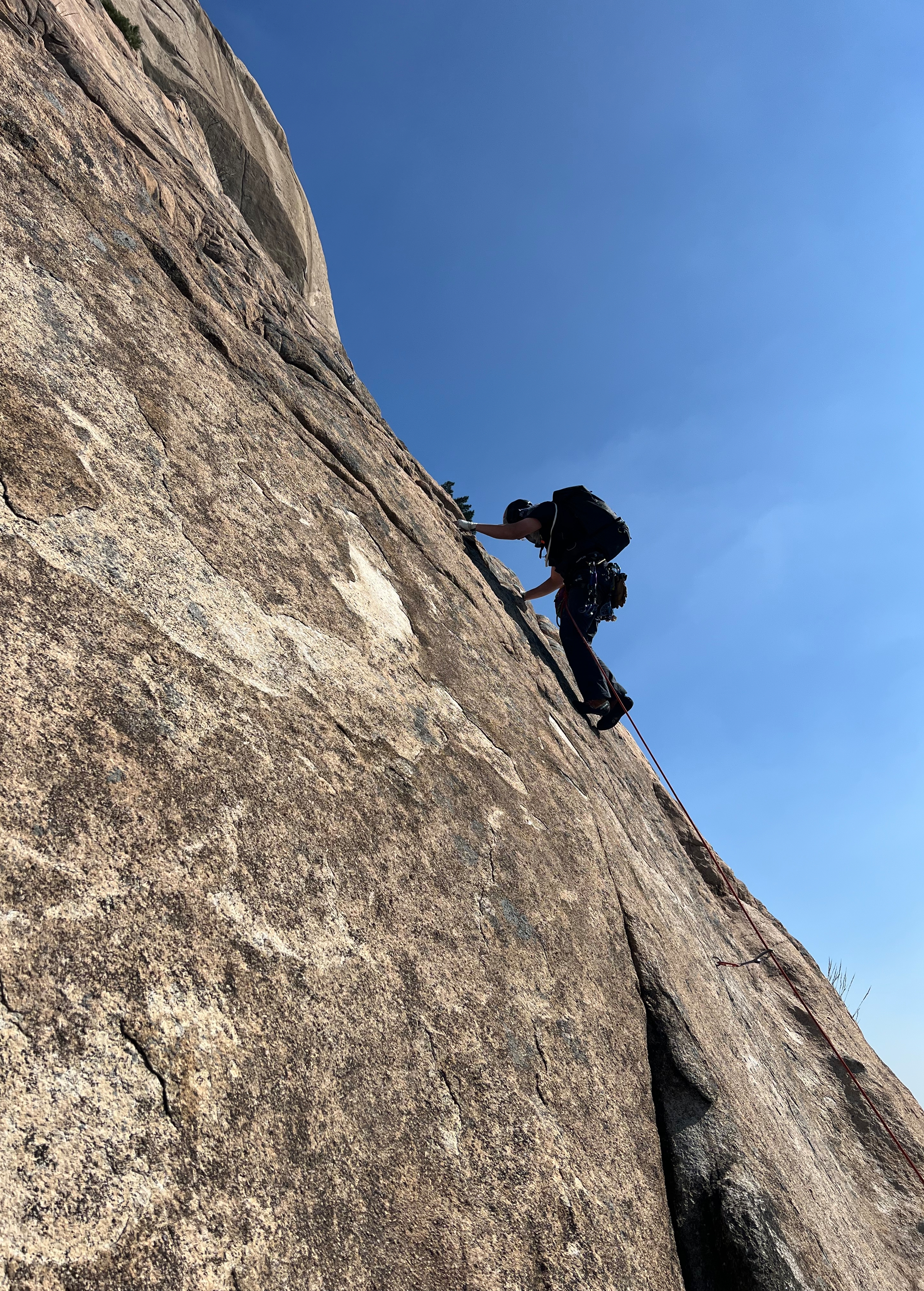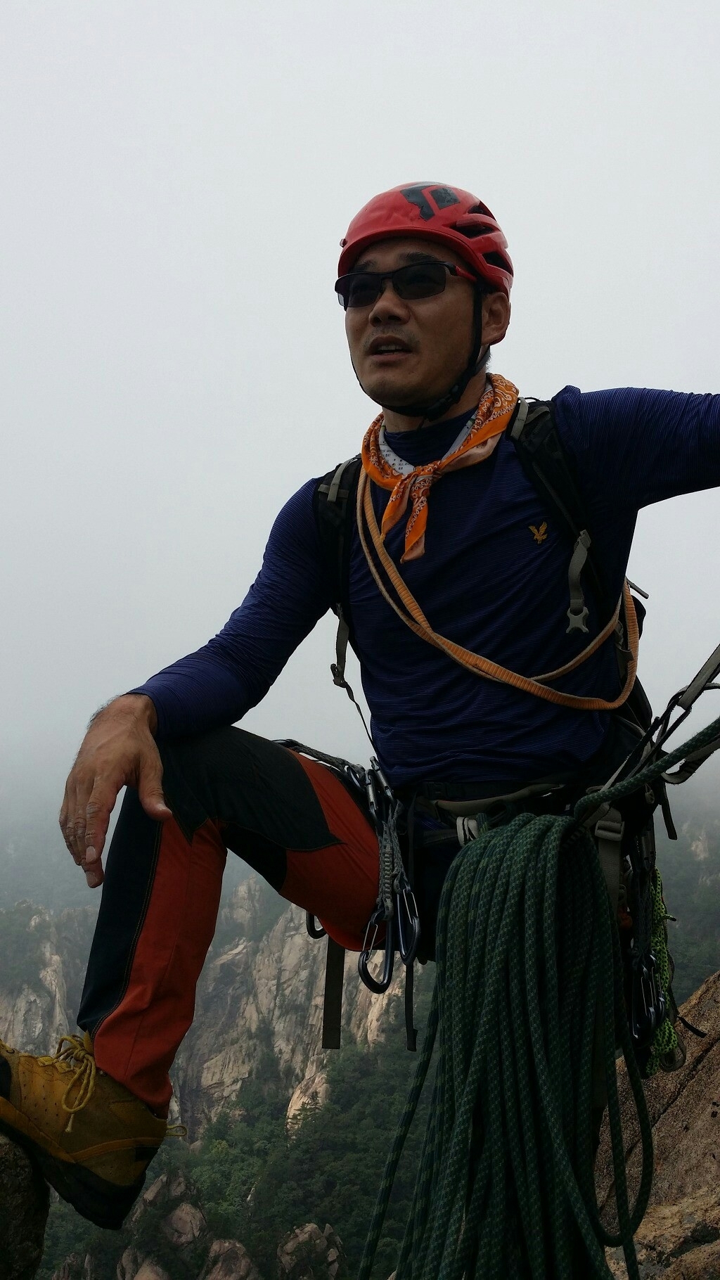아미고스 마지막 피치가 11a 크럭스 구간이라 동혁선배님도 고전을 했는데, 이 날 노적봉 정상까지 워킹으로 깜짝 응원 오신 민구고문님의 목소리가 더욱 반갑게 느껴졌습니다. (도대체 어떻게 워킹으로 오신건가요..?;;)