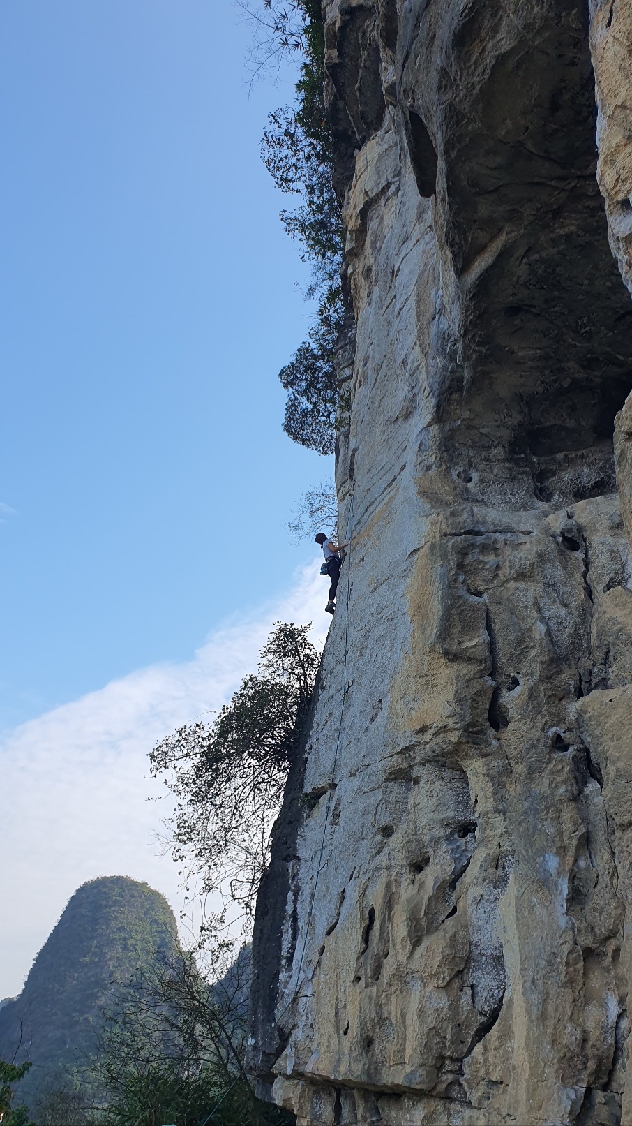 제게 세컨 빌레이를 맡기고 온사이트를 향해 나아가는 선배님도 쫄리셨겠지만 저 역시 무척 긴장되고 떨려서 세컨빌레이라는 것도 엄청나게 스트레스 강도가 큰 것이라는 걸 느꼈습니다. 벽에 붙어 보지 않으면 그 각도나 홀드의 위치를 정확하게 파악할 수 없고, 앵커간 간격이 멀어질 수록 긴장감이 커졌는데 딱 걱정의 크기가 커질 때마다 선배님이 캠도 치고 퀵을 걸어주셔서 같이 안심했던 것 같습니다.