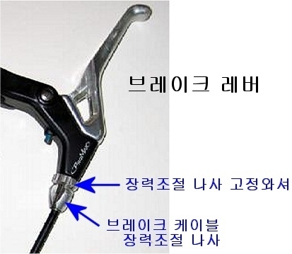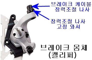 일반적으로는 브레이크 레버와 브레이크 몸체(캘리퍼)에 붙어 있는 장력조절