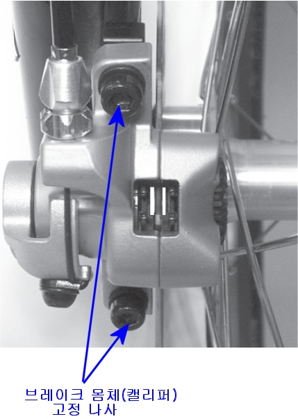 브레이크 몸체(캘리퍼)를 고정시키고 있는 나사 두 개를