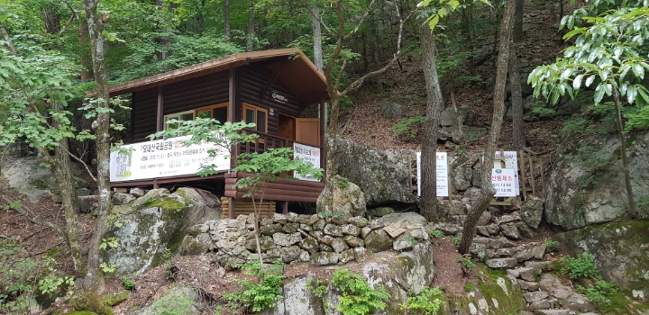 소금강 분소가 구룡폭포 곁에 있어니
