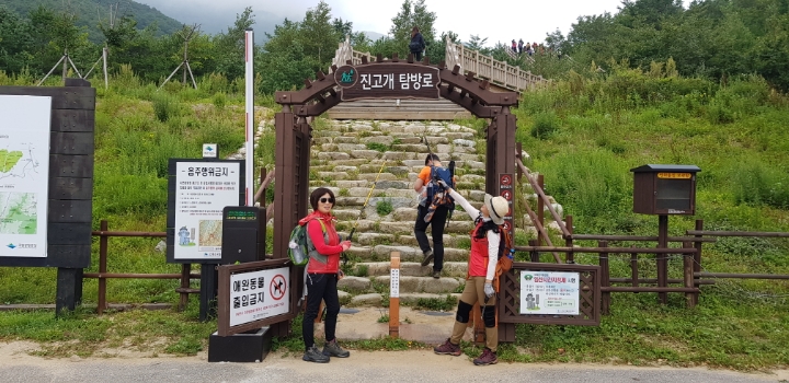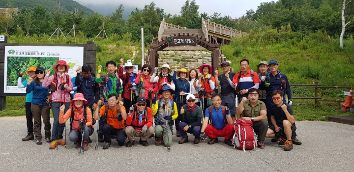 09시25분경 진고개 분소도착 산행준비하고 단체사진 촬영후 09시 30분경 산행시작