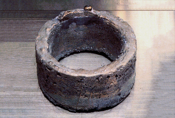 핵 무기 급으로 정제된 플루토늄 고리. 이의 반경은 약 11cm이고 무게는 5.5kg인데, 이는 폭탄 한 개의 중핵부(core)로 사용하기에 충분한 양이다.