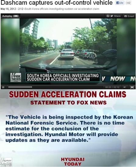 국내에서 급발진 사고가 잇따라 발생해 논란이 일고 있는 가운데 미국 폭스 뉴스가 16일(현지시간) 지난 6일 발생한 'YF 소나타 급발진 사고'를 보도했다.