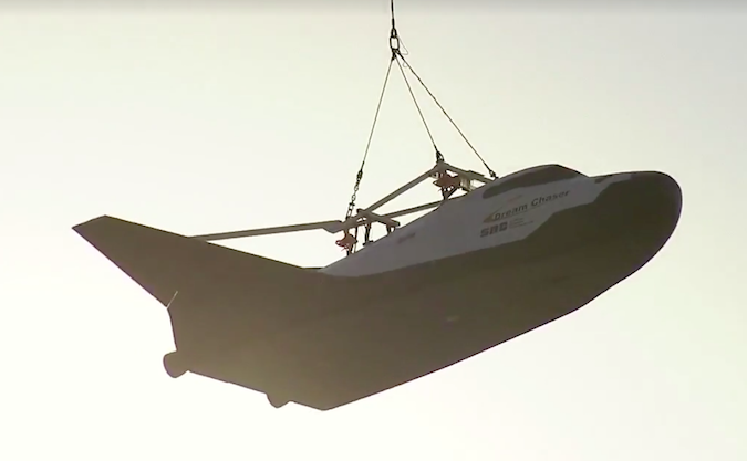 The automated spacecraft was lifted airborne Wednesday by a dual-rotor Boeing Vertol 234 helicopter operated by Columbia Helicopters. 자동화 우주선은 콜롬비아 헬리콥터가 운영하는 이중 로터 보잉 Vertol 234 헬리콥터에 의해 공중으로 부상했다. The “captive carry” test flight was expected to be used to test out telemetry and control systems before a planned drop test later this year to demonstrate Dream Chaser's ability to make an autopilot approach and landing to a runway. "캡 티브 캐리 (Captive Carry)"시험 비행은 드림 체이서 (Dream Chaser)의 자동 조종 접근법과 활주로 착륙 능력을 입증하기 위해 올해 말에 계획된 낙하 시험 전에 원격 측정 및 제어 시스템을 시험하기 위해 사용될 것으로 예상됩니다.
