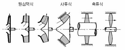 (a) 원심펌프 (b)사류펌프 (c) 축류펌프