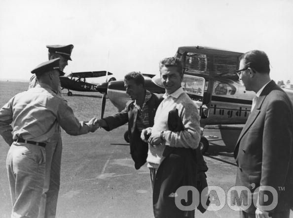 <카라얀은 취미로 비행기 조종을 하였다. 이외에 취미로 자동차 경주, 요트 등에도 관심이 많았다. 미 공군기지에서 이륙 전 공군 장교들과 인사를 나누는 카라얀>