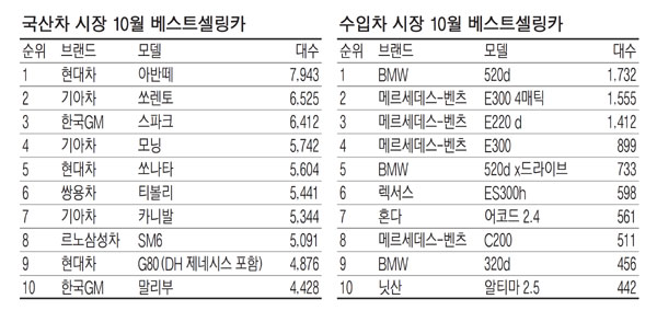 알뜰정보 16년 10월 자동차 판매순위