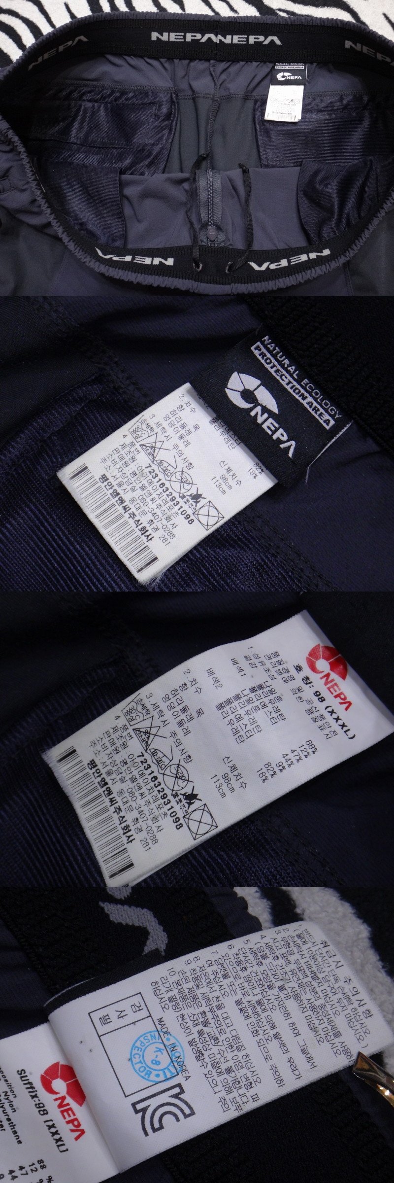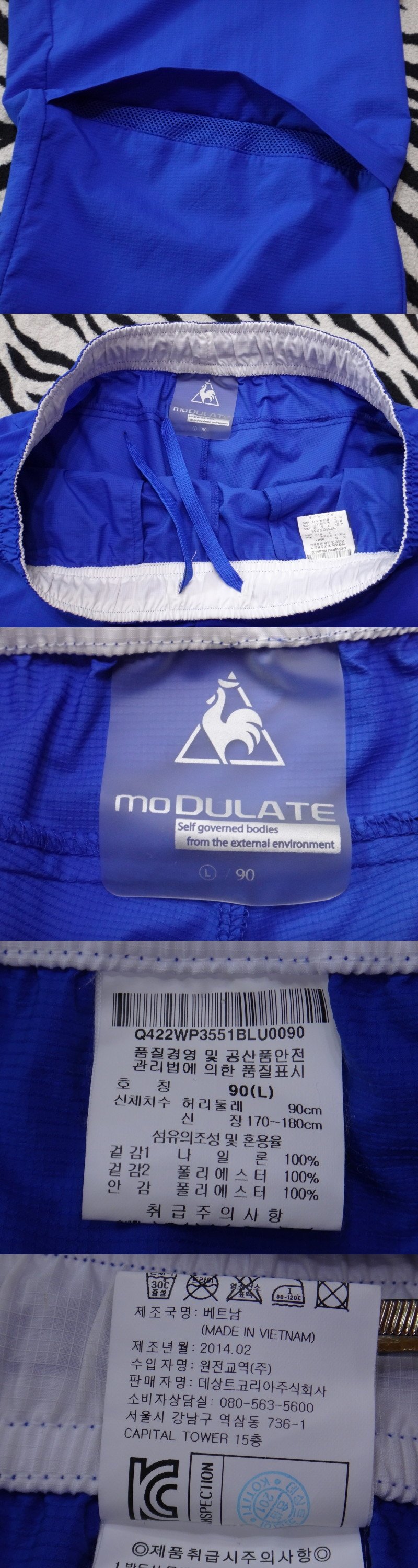 품질:스판성 뛰어난 기능성 팬츠이며,겉감과 안감