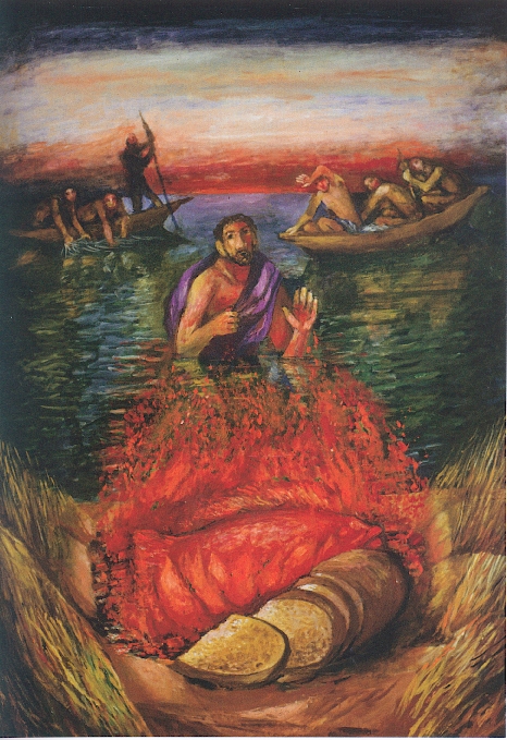 <예수님께서는 다가가셔서 빵을 들어 그들에게 주시고 고기도 주셨다.>