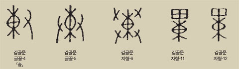 ▲ 갑골문 東자의 여러표현-東자는 초기에 동쪽의 뜻이 아닌 쌀가마와 같은 곡식자루를 의미했다. 자료: 김경일 상명대 교수 |