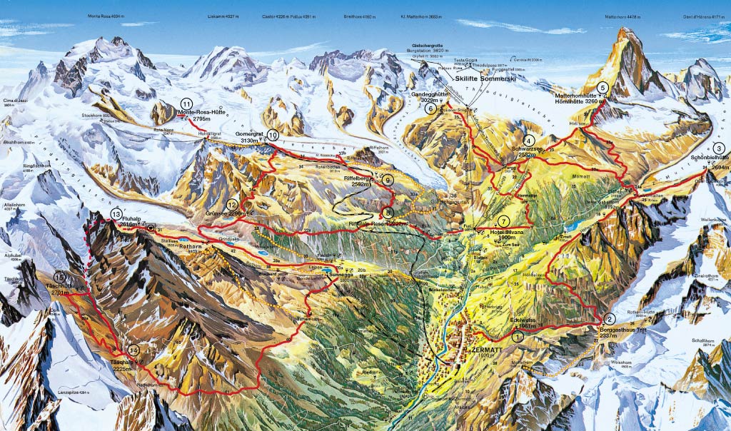 체르맛 마테호른 전체 하이킹 트레일 지도