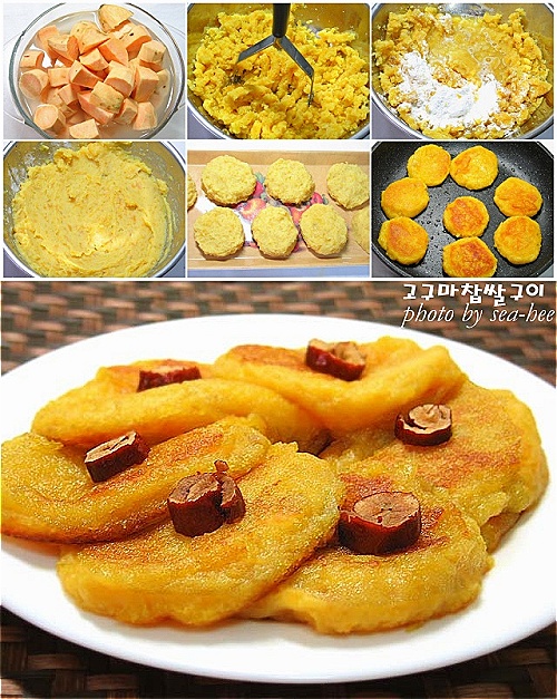 달콤하면서도 고소한 고구마찹쌀구이예요.간식으로도 좋고 한끼 식사로도 손색이 없답니다.자아.그러면 같이 만들어보아요.참고로 ()안의 숫자는 밥수저의 양이예요.