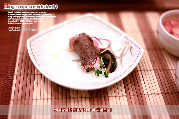 이렇게 편육에 해살물과 냉채를 섞어서 쌈을 싸듯 먹어보자~