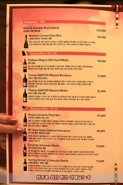 어르신들과 함께가 아니고 친구들과 또는 연인과 함께라면 반주를 와인으로 즐길수 있다.