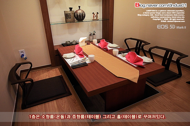 다다미식으로 꾸며진 소형 온돌룸은 연인이나 4인이하의 친구들과의 식사에 알맞을듯 싶다.