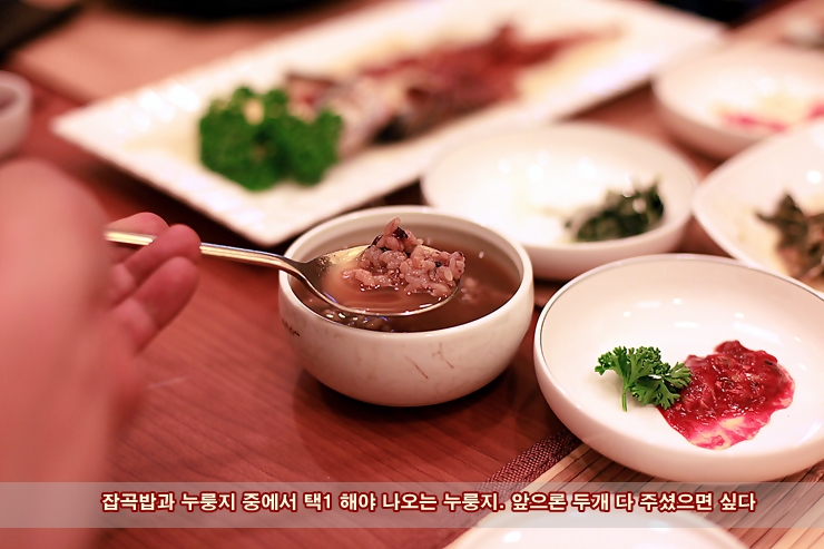 식사는 잡곡밥과 누룽지 중에서 택1 할수 있다.