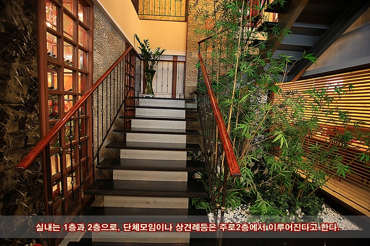 2층이 대 연회석을 즐길수있는 대형룸, 그리고 상견례에 좋은 가족룸들로 꾸며져 있다.