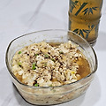 1차 재료: 순두부 반개, 덜결1개, 마늘 0.2스푼, 간장1스푼, 참치액1스푼, 부추(생략가능)