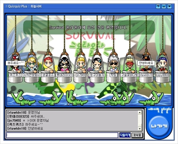 퀴즈를 풀며, 캐릭터를 꾸미고 채팅을 하며 게임을 할 수 있다는 것이