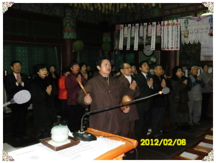 일심발원 도량청정 법신현전 고두정례 항사법계 무량불자 모두함께 부처님의 화장장엄 대해에서 서로만나 보리본향 대도량에 들어가서