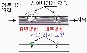 피 검사체를 교류 또는 직류로 자성을 띄게한 후, 자분을 뿌려주면 결함부위에 자분이 밀집되어