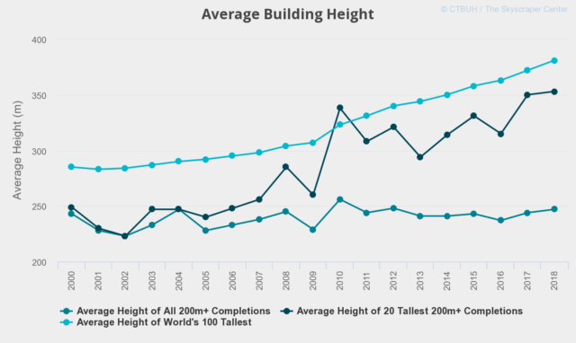 우리가 지구를 둘러보면 고층 건물이 점점 더 높아지고 있다는 사실을 눈치채지 않을 수 없습니다. 예를 들어, 2000년에 완성된 가장 높은 100개 건물의 평균 높이는 약 285미터(935피트)였습니다. 2018년에는 그 길이가 약 385미터(1263피트)였으며, 연평균 성장률은 1.8%였습니다. 건물 높이가 이렇게 높아지는 이유는 무엇입니까?