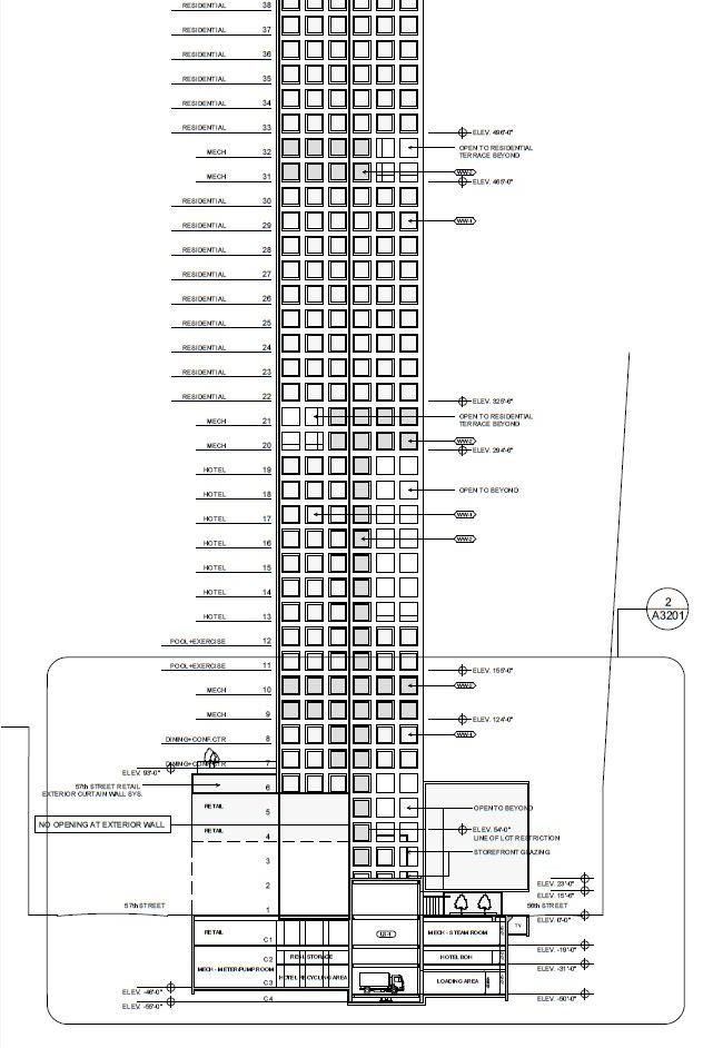 2단계: 방송권을 구매하세요. 뉴욕시에서는 법이 허용하는 것보다 밀도가 낮은 부지의 소유자는 사용하지 않는 바닥 면적을 인접한 부지의 개발자에게 판매할 수 있으며, 그러면 개발자는 결과적으로 더 높은 건물을 지을 수 있습니다. 슈퍼슬림은 개발자가 구역 지정 코드가 허용하는 것보다 더 많은 높이를 추가할 수 있도록 허용하므로 공중권 시장 없이는 불가능합니다 . 그들은 보통 평방피트당 토지 가격의 약 절반 에 판매됩니다 . 방송권 비용: 9,750만 달러 .